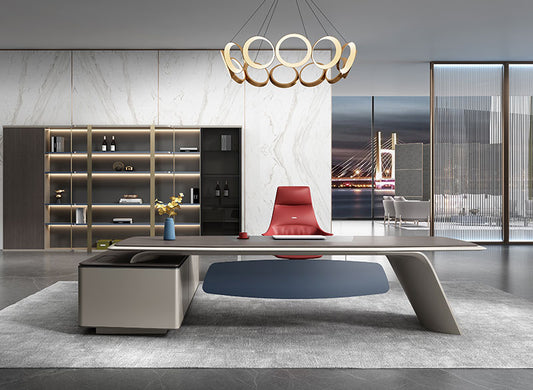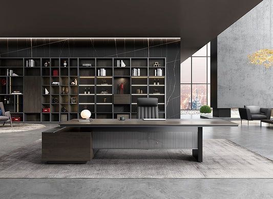 مجموعة Qasar Noir تحول المساحات التنفيذية بتصميمها الجريء والمستقبلي. مستوحاة من الجماليات الزاويّة الأنيقة للمركبات...