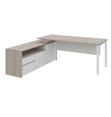 يوفر المكتب سطح عمل واسع مع إدارة أسلاك مدمجة، مما يحافظ على نظافة مساحة العمل. توفر الكريدينزا الإرجاعية تخزينًا إضافيًا مع باب متأرجح، حامل وحدة المعالجة المركزية، وأدراج قابلة للسحب، وتتضمن نظام قفل مخفي لمزيد من الأمان.