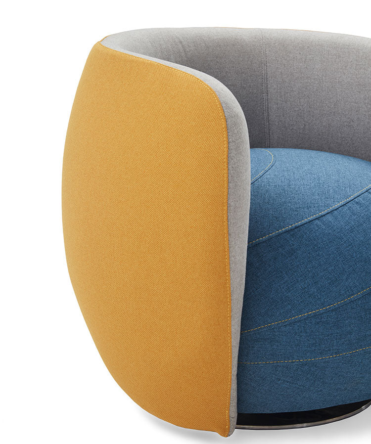 يتميز كرسي Colarch Armchair بقاعدة كروم فولاذية دوارة تتيح الحركة بسهولة، مما يمكّن من التعاون الديناميكي والانتقال السلس بين مساحات العمل.