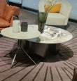 تتميز طاولة القهوة المركزية Zurich بتشطيب رخام بيئي أبيض ينضح بالفخامة، مما يجعلها قطعة مركزية مذهلة لمساحتك التنفيذية.