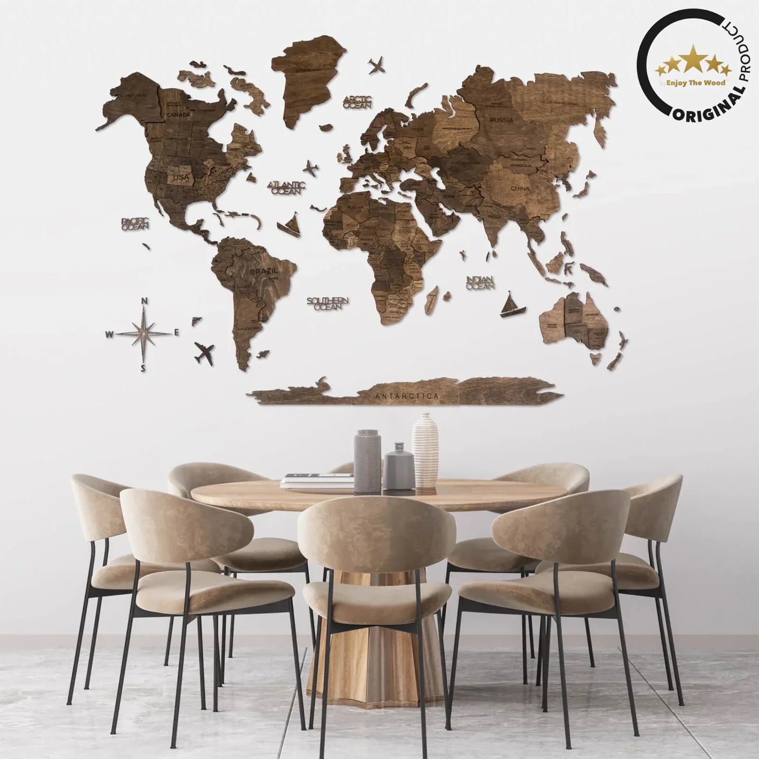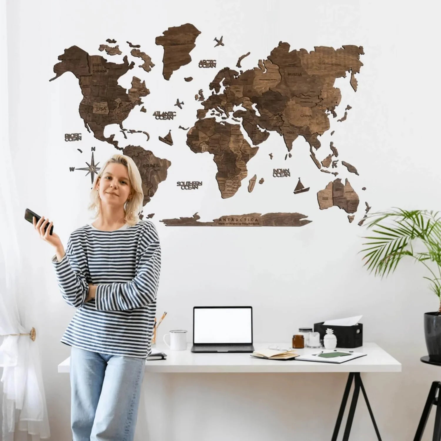 Our 3D Wooden World Map is more than just a piece of decor; it's a journey waiting to unfold. Crafted from sustainable materials and designed to inspire wanderlust, this unique piece of art adds a touch of elegance to any space. Customize it with photos and pins to relive your adventures or dream of future travels.