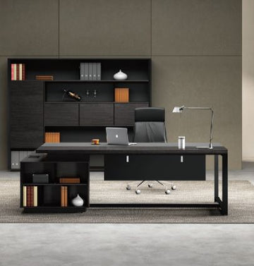 In the Feigerafi project's executive office concept, the table is a meticulously designed architectural piece with substantial sides and a robust worktop. The collection combines technology and comfort to bring a unique personality to the office space, emphasizing flexibility and open management.