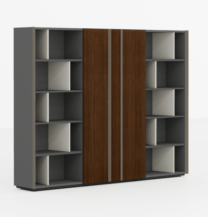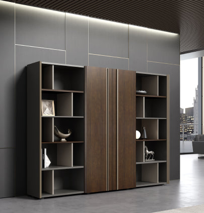 Crafted with high-quality veneer and lacquered surfaces, this executive storage cabinet exudes sophistication. The elegant contrast of finishes, including the versatile CY08 Black Walnut option with highlights in CF17 and CF58 Marine Blue, adds versatility to suit various office aesthetics.