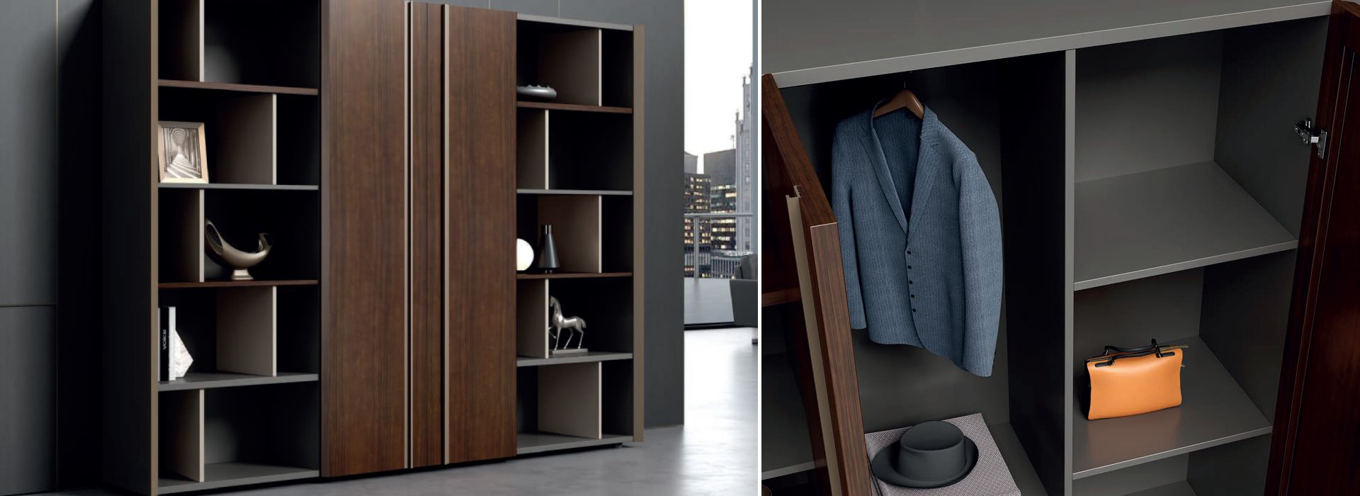 The Gaddi Executive Wall Cabinet is an exceptional storage unit that combines style with functionality. With its 5 open shelves and 2 tall full veneer wood sections, it offers ample space for organizing and displaying items. The integrated foldable coat hanger adds both aesthetic appeal and practicality to the cabinet.
