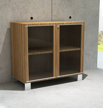 Tailor this cabinet to your taste with premium wood veneer doors and a sleek piano lacquered body in Black or White, achieving a look that suits your workspace perfectly.