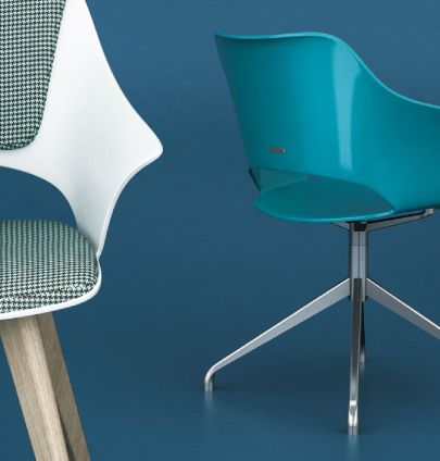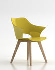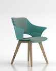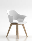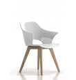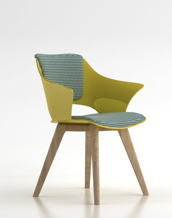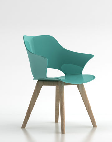 The Siye Occasional Chair blends solid wood legs with glossy ABS plastic for a stylish, mid-century-inspired look that adds elegance to any space, making it a versatile and eye-catching decor choice.