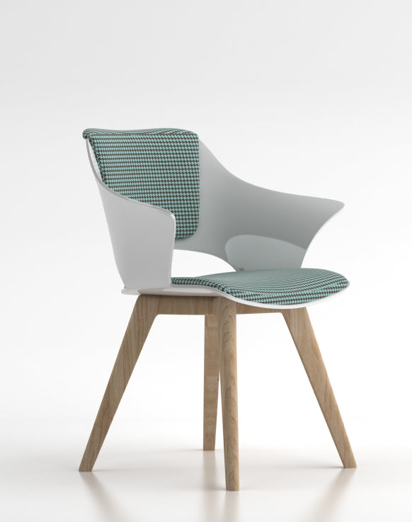 Personalize your chair with fabric choices for the padded backrest and seat to match your decor. The recommended MG01 fabric, in Grey & Cyan pattern, provides comfort and a contemporary touch, enhancing the chair's aesthetic.