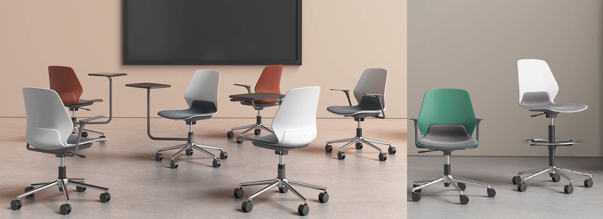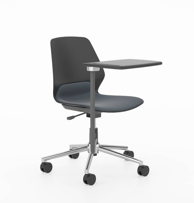 Elevate your office functionality with the Staryo Midback Chair in Chrome 5-Star Base and Writing Pad, blending sleek minimalist design with practical ergonomic features. Crafted with a durable matte PP plastic body, premium TA02 Tuxedo fabric, and a rotatable writing pad, this chair offers adjustable height and robust support, ensuring lasting comfort and versatility with a 5-year warranty.