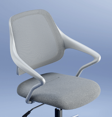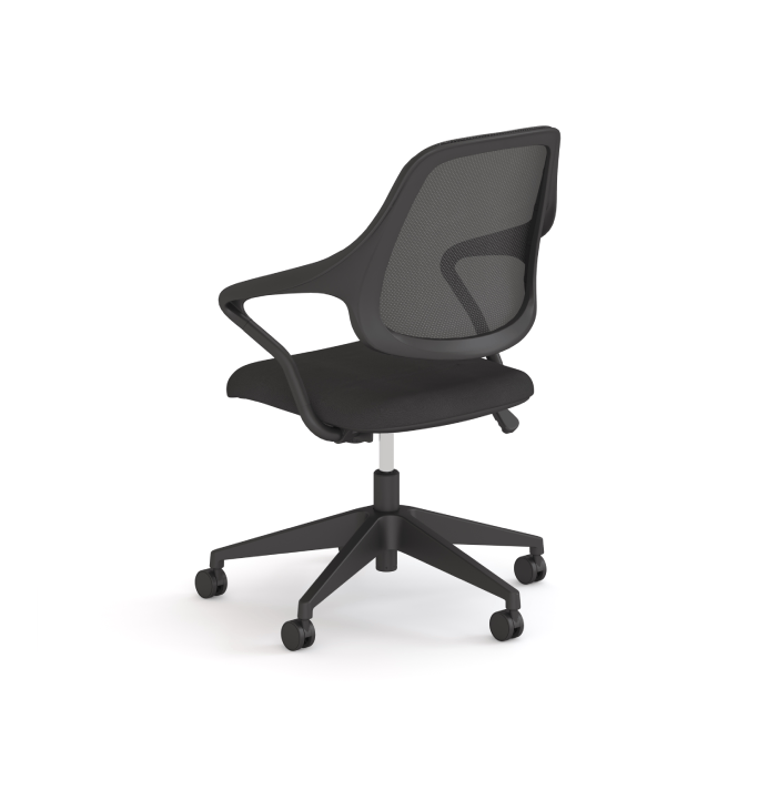 The elastomeric mesh in Black, Red, Blue, or Grey ensures breathable comfort and support during long work sessions.