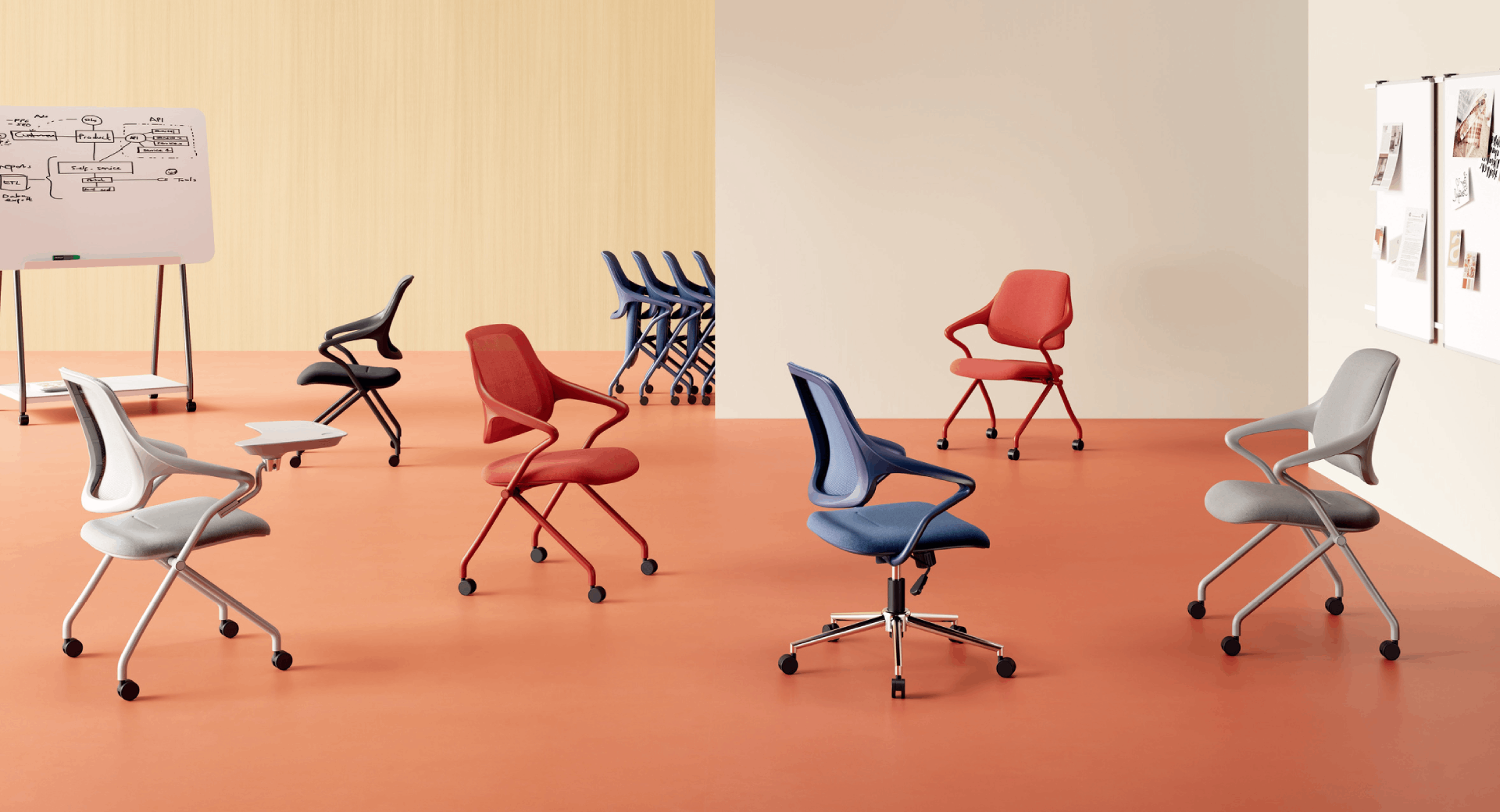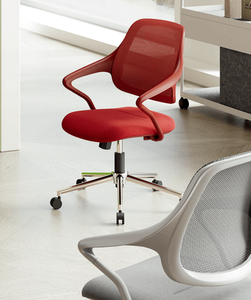 Available in Black, White, Red, or Blue PP backrests with matching finishes, adding a bold aesthetic to any workspace.